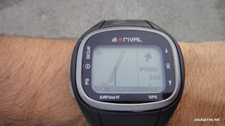 A verdadeira utilidade do mapa, pelo menos para mim, revela-se quando carregamos previamente o track GPS da prova que vamos fazer. Aí sim, o relógio mostra o track que carregámos juntamente com o que estamos a registar. Caso haja um engano podemos facilmente olhar para o écran e verificar o caminho que deveríamos estar a fazer, bem como a nossa posição actual e a direcção que deveremos seguir para voltar ao caminho certo. Este fim de semana no Ultra Trail de Sesimbra fui confirmando isto mesmo com as pequenas alterações que foram feitas ao traçado. Felizmente a prova estava muito bem marcada e apenas ia constatando as alterações e em momento algum tive de usar o relógio para encontrar o caminho.